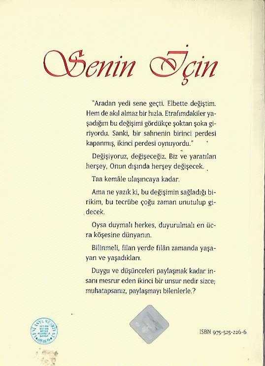 Senin İçin adlı eser, Kitap > Edebiyat, Kurgu > Diğer kategorisinde İkinci El olarak satıştadır.