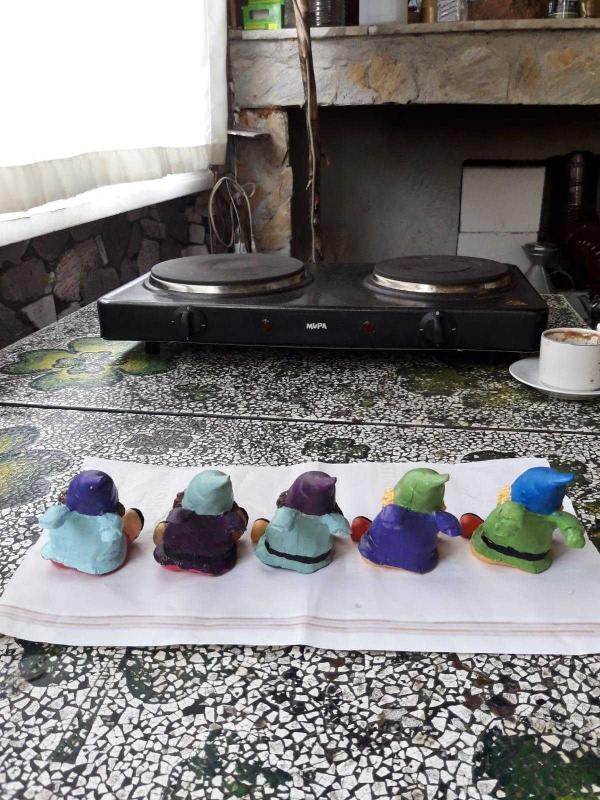 Seramik 5 adet cüceler başlıklı antika/koleksiyon objesi Türkiye menşe’lidir. 2000 ve sonrası dönemine aittir.