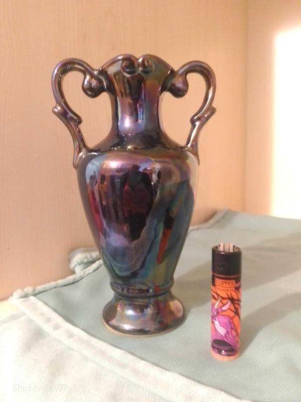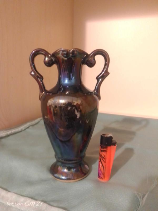 Seramik, sırlı, el boyamalı orijinal bir vazo. başlıklı antika/koleksiyon objesi Türkiye menşe’lidir. 1950-1999 arası dönemine aittir.