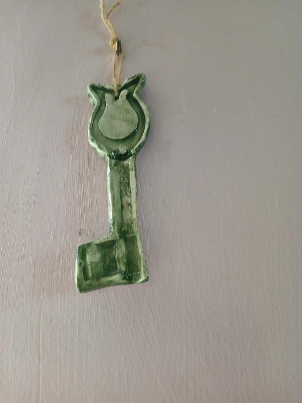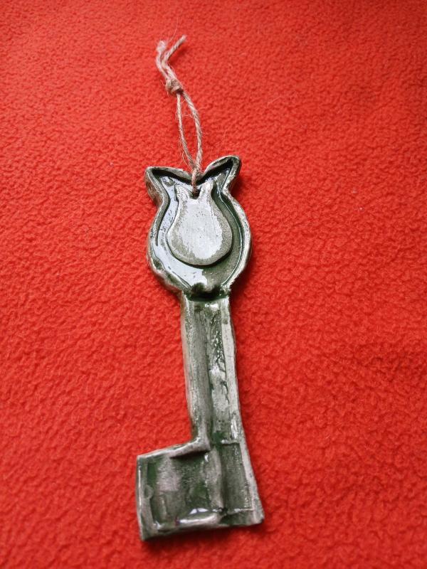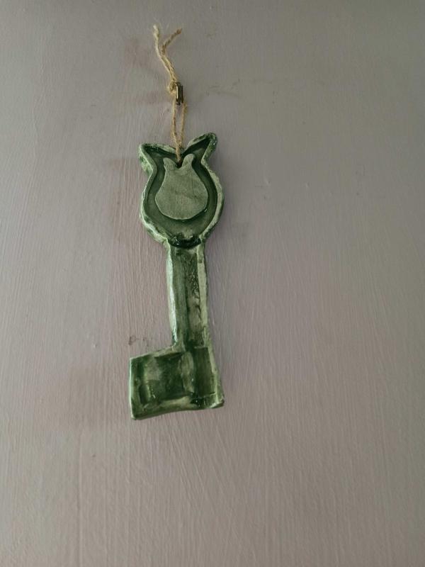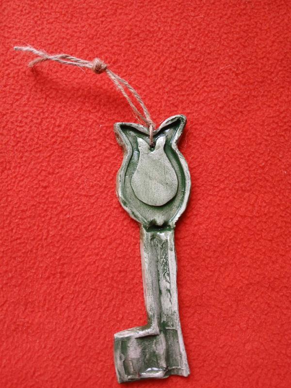 Seramikten yaptığım kendi el emeğim lale motifli dekoratif duvar süsü ölçüleri:(uzunluk:16cm)