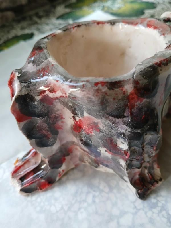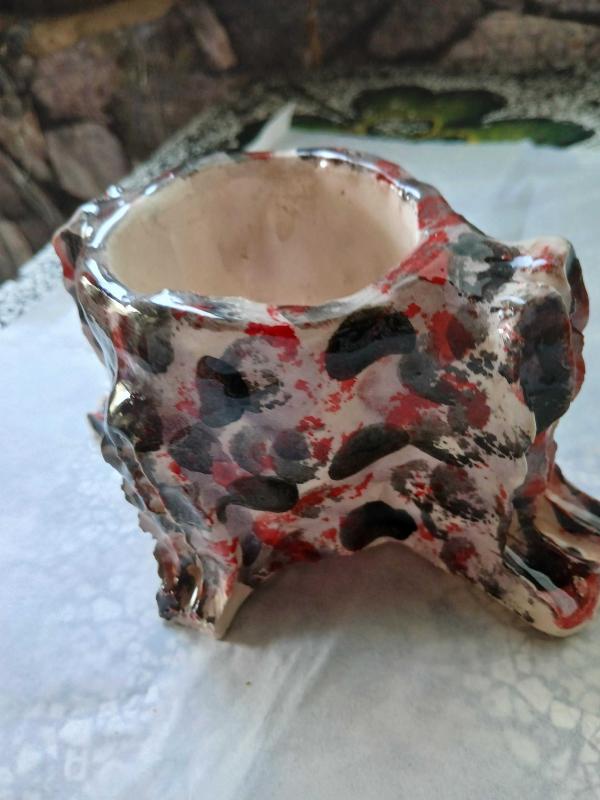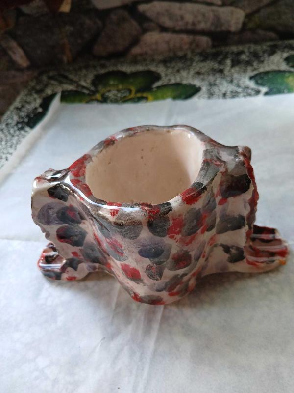 Seramikten yaptığım üzeri puantiyeli sukulent lik yada kalemlik olarak kullanabilirsiniz alttan delik açmaya çalıştım geç kaldığım için kurumuştu açılmadı Ölçüleri:(Ağız çapı:7cm) (yükseklik:8cm)