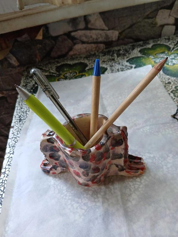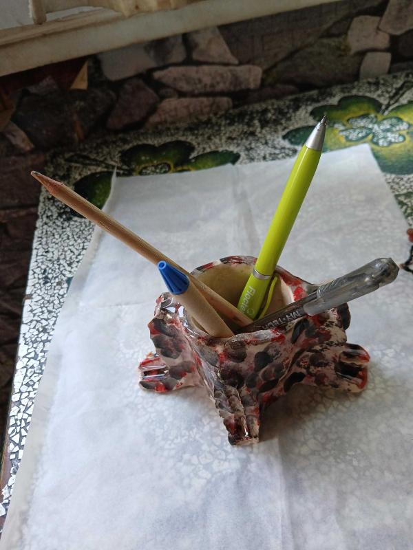 Seramikten dekoratif saksı kalemlik başlıklı antika/koleksiyon objesi Türkiye menşe’lidir. 2000 ve sonrası dönemine aittir.
