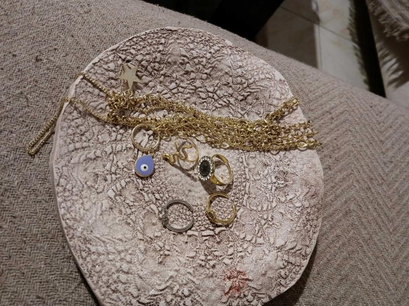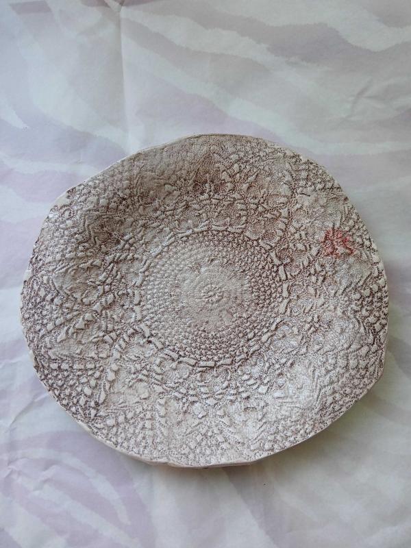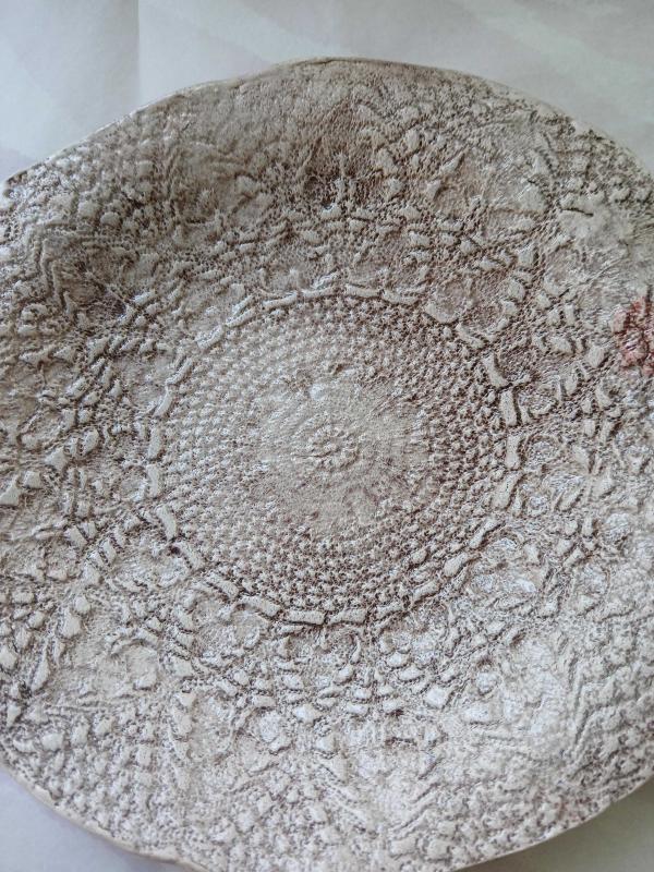 Seramikten yaptığım üzerinde dantel baskı yapıldı sırlanmış dekoratif amaçlı kullanabilirsiniz tabağın içindekiler dekoratif amaçlı kondu satış amaçlı değil ölçüleri:(Eni:20x18cm)