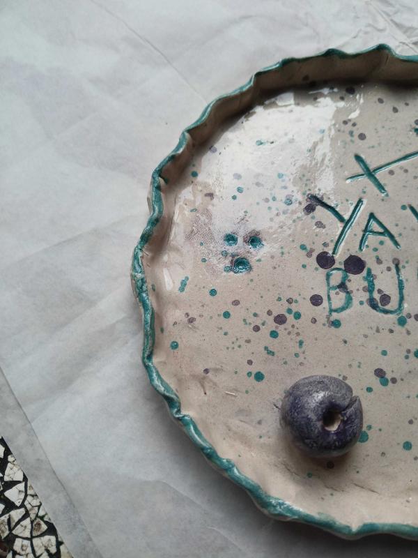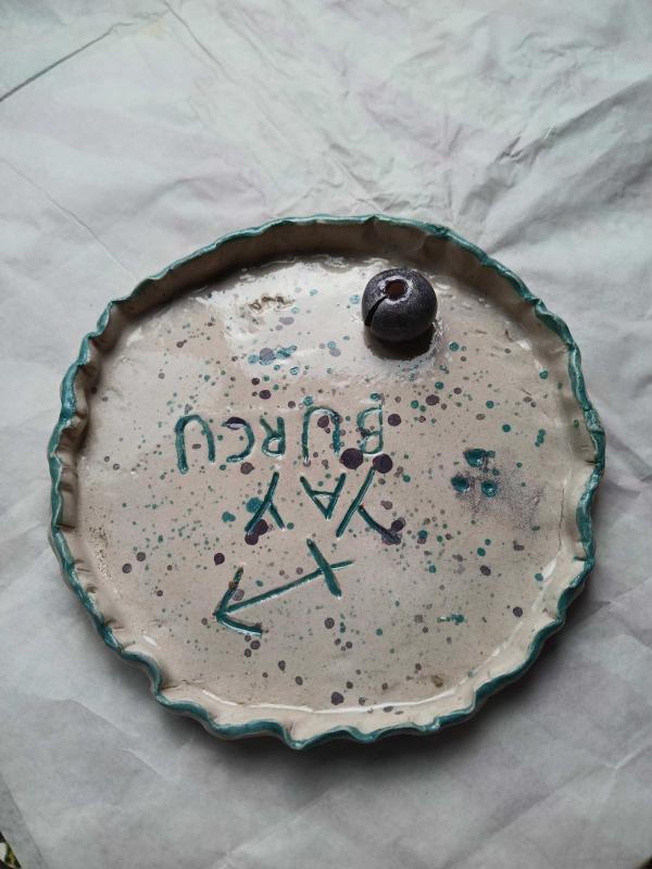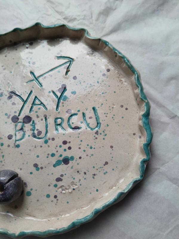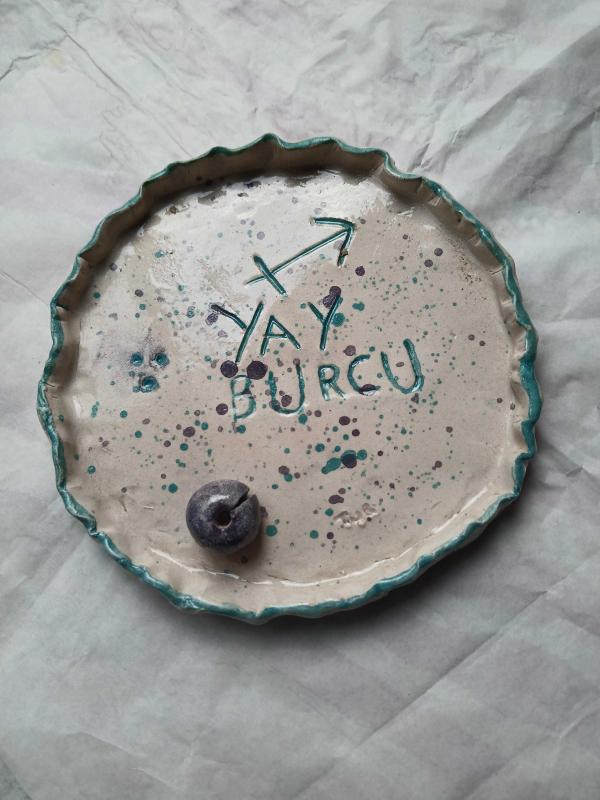 Seramikten yaptığım üzerinde yay burcu simgesi olan sırlanmış tabak yada tütsülük olarak kullanabilirsiniz ölçüleri:(14x14)
