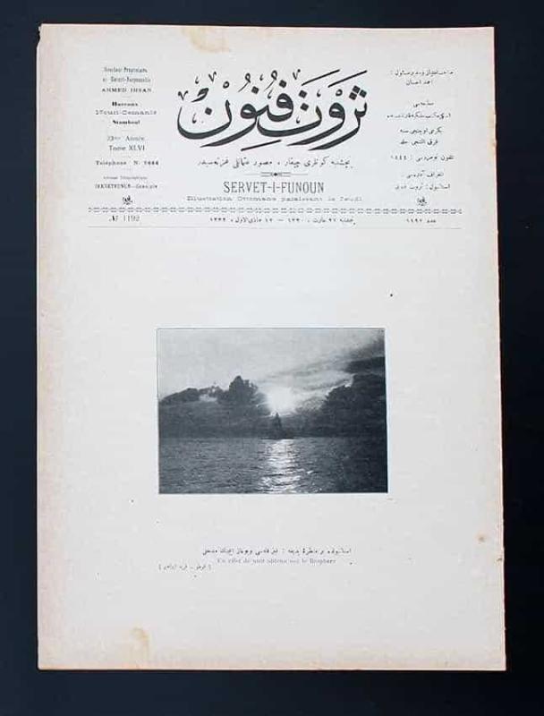 Osmanlıca Servet-i Fünun Dergisi İçindekiler: Musahabe-i Felsefe - Dekart ve Bergson Birinci Kolordu Kumandanı Mir Alay Nuri Bey Merhum İmparator Vapuru Kadınlar ve Hakk-ı İntibah Avrupa ile Amerika arasında Seyahat-i Havaiye 27 Mart 1914 tarihinde çıkmıştır Sayı:1192 16 sayfa Kondisyon: Çok İyi 25,5x35,5 cm ebatlarında Ön kapakta ; İstanbul'da bir manzara: Kız Kulesi ve Boğaziçi'nin med hali fotoğraf kapaklıdır .