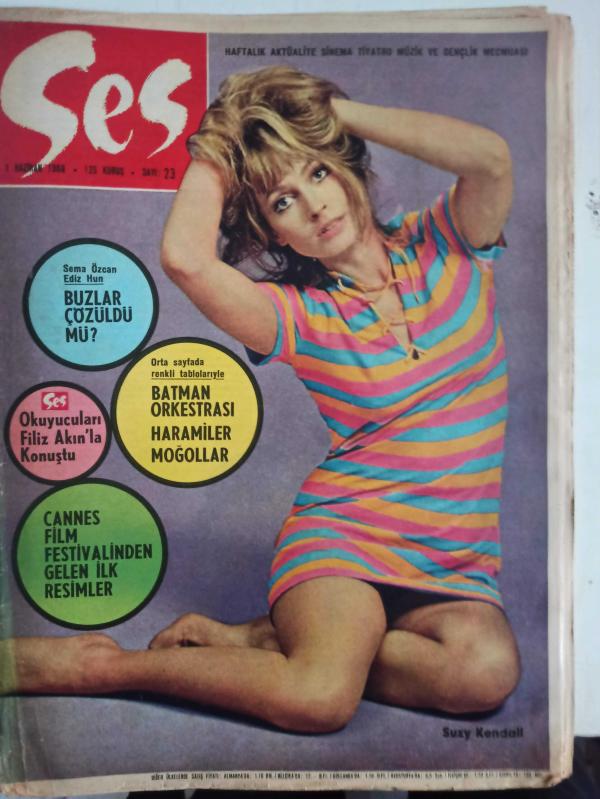 Ses Dergisi - 1 Haziran 1968 - Sayı:23 - Suzy Kendall - Sema Özcan - Ediz Hun - Filiz Akın - Rock Hudson - Claudia Cardinale - Roger Vadim - Catherine Deneuve - Sophia Loren - Vittorio Gassman - Mario Adorf - Ömer Şerif - Kontes Veronica - Carlos Saura - Stefania Careddu - Uğur Güçlü - Nil Kutval - Ülkü Erakalın - Batman Orkestrası - Haramiler - Moğollar - Semih Özmert - Ünal Üstol - Atila Akman - Çetin Oral - Ünal Yiğitbaş - İlhan Telli - Erkin Koray - Turgut Oksay - Jack Hawkins - Cüneyt Arkın - Fatma Girik - Colleen Moore - Gary Cooper - Yılmaz Güney - Nebahat Çehre - Yapı ve Kredi Bankası Reklamı - Tam Takım Dergi Yıpranma, sararmalar, kupon kesiği ve yırtılmalar zamana bağlı olarak görülebilir