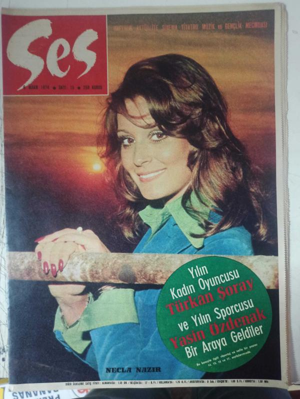 Ses Dergisi - 6 Nisan 1974 - Sayı:15 - Necla Nazır - Türkan Şoray - Yasin Özdenak - Şükran Güngör - Yıldız Kenter - Zeki Müren - Gönül Yazar - Behzat Şenyıldız - Filiz Akın - Hülya Koçyiğit - Fatma Girik - Faruk Bayülkem - Osman Öztürk - Cemal Çalışır - Bahattin Özyurt - Sezil Ekin - Füsun Özben - Neslihan Yargıcı - Aydan Adan - Neslihan Danışman - İnci Günay - Raquel Welch - Donald Sutherland - Yasin Özdenak - Hüsam Çelebi - Rauf Ulukurt - Fikret Hakan - Müjdat Gezen - Yalçın Gülhan - Mobil Motor Yağı - Edip Akbayram - Nilüfer - David Bowie - Ajda PEkkan - Cem Karaca - Marion Maerz - Muazzez Abacı - Taner Şener - Zeki Müren - Esin Engin - Ankara Gazoz Reklamı - Aytaç Arman - Vural Cantürk - Nurhan Damcıoğlu - Sophia Loren - Nilüfer Koçyiğit - Yapı ve Kredi Bankası Reklamı - Tam Takım Dergi Yıpranma, sararmalar, kupon kesiği ve yırtılmalar zamana bağlı olarak görülebilir