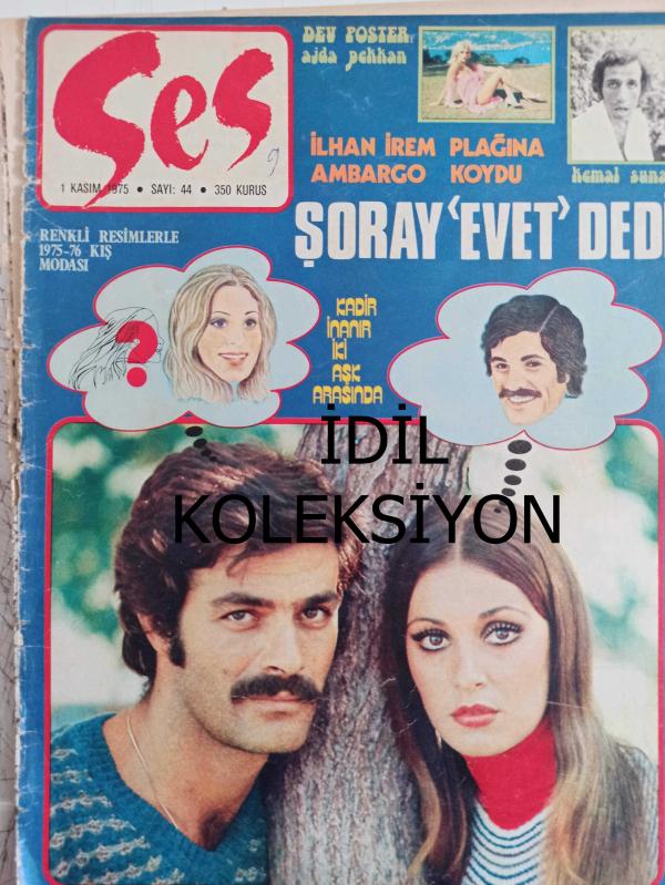 Ses Haftalık Aktüalite Sinema Tiyatro Müzik ve Gençlik Mecmuası Dergisi - 1 Kasım 1975 - Sayı:44 - Kadir İnanır - Necla Nazır - Ahmet Olcay - Muammer Tuncer - Henry Silva - Robert Wood - Edmund Purdom - Donald O'Brien - Türkan Şoray - Akbank Reklamı - Dergi Tam Değildir Sadece 6 Sayfası Mevcuttur. Yıpranma, sararmalar, kupon kesiği ve yırtılmalar zamana bağlı olarak görülebilir