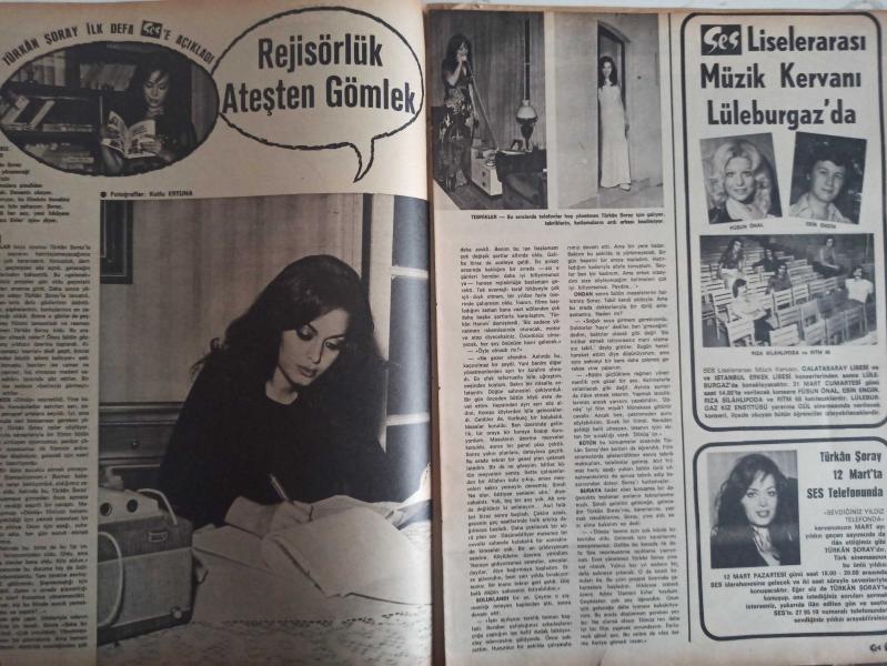 Ses Haftalık Aktüalite Sinema Tiyatro Müzik ve Gençlik Mecmuası Dergisi - 10 Mart 1973 - Sayı:11 - Hülya Koçyiğit - Ediz Hun - Ajda Pekkan - Tamer Yiğit - Fatma Belgen - Tarık Akan - Sezer Güvenirgil - Aytaç Arman - Hülya Darcan - Murat Köseoğlu - İrfan Ünal - Nahit Ataman - Türker İnanoğlu - Duran Tantekin - Hulki Saner - Kaçuni Hakı - Hürrem Erman - Türkan Şoray - Füsun Önal - Esin Engin - Rıza Silahlıpoda - Naciye Sönmez - Zeynep Aksu - Yıldız Kenter - Şükran Güngör - Lux Sabun Reklamı - Sevim Tuna - Şadan Ertuğrul - Fatma Belgen - Nebahat Çehre - Yılmaz Köksal - Sezer Güvenirgil - Cem Karaca - Göksel Arsoy - Selpak Peçete Reklamı - William Shakespeare - Haldun Taner - Semih Sergen - Ediz Hun - Ferit Şevki - Neşe Karaböcek - Behiye Aksoy - Mesut Aytunca - Sadri Alışık -Hikmet Münir Ebcioğlu - Murat 124 Araba Reklamı fotoğraf ve haberi - Dergi Tam Değildir Sadece 26 Sayfası Mevcuttur Yıpranma, sararmalar, kupon kesiği ve yırtılmalar zamana bağlı olarak görülebilir
