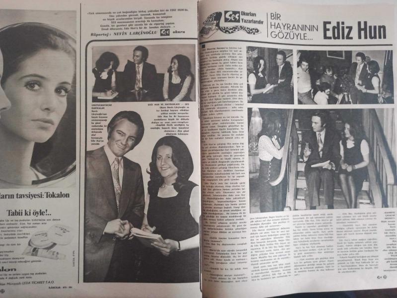 Ses Haftalık Aktüalite Sinema Tiyatro Müzik ve Gençlik Mecmuası Dergisi - 19 Mayıs 1973 - Sayı:21 - Serdar Gökhan - Fatma Belgen - Füsun Önal - Bora Ayanoğlu - Mine Koşan - Ülkü Erakalın - Ahmet Özhan - Temel Gürsu - Hale Soygazi - Berç Kürkçüyan - Esin Engin - Türkan Şoray - Murat Soydan - Muazzez Arçay - Gazanfer Özcan - Nilüfer - Yasemin - Akın Tekstil Reklamı - Emel Sayın - Murat Soydan - Zaliha - Nurhan Damcıoğlu - Cahit Tanman - Cahit Tanman - Meryem Ana - Sevda Ferdağ - Rod Taylor - Mary Hilem - Orhan Gencebay - Hale Soygazi - İzzet Günay - Cutex Ruj Reklamı - Fatma Belgen - Serdar Gökhan - Adnan Veli - Umur Bugay - Oktay Arayıcı - Ülkü Tamer - Sadık Şendil - Kardemir Konduk - Cengiz Gündoğdu - Ferhan Şensoy - Zeki Alasya - Haldun Taner - Rupen Özer - Zeki Alasya - Kemal Sunal - Ayşen Gruda - Metin Akpınar - Ahmet Gülhan - Bilge Şen - Nevin Larçinoğlu - Ediz Hun - Siemens Elektrikli Süpürge Reklamı - Esin Afşar - Necla Emanet - Esin Afşar - Renault Araba Reklamı - Reksona Sabun Reklamı - Tam Takım Dergi Yıpranma, sararmalar, kupon kesiği ve yırtılmalar zamana bağlı olarak görülebilir