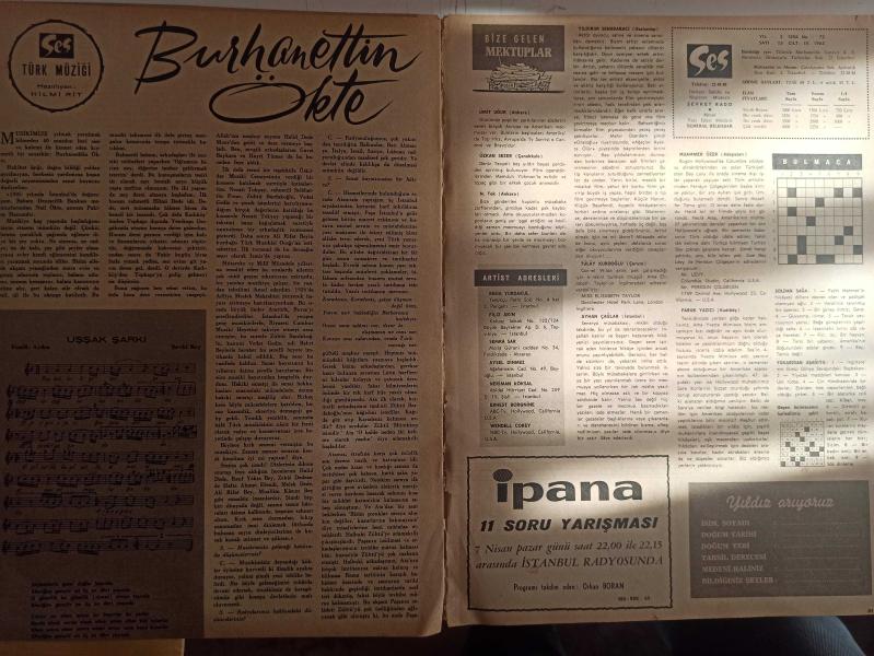 Ses Haftalık Aktüalite Sinema Tiyatro Müzik ve Gençlik Mecmuası Dergisi - 6 Nisan 1963 - Sayı:15 - Semra Sar - 1 Yıldız Arıyoruz haberi - Orhan Günşiray - Müzik Albümü - Perry Como - Sara Korle - Red Skelton - Barbara Stanwyck - Rod Steiger - James Stewart - Türkan Şoray - Hilmi Rit - Burhaneddin Ökte - Lux Sabun Reklamı fotoğraf ve haberi - Dergi Tam Değildir Sadece 8 Sayfası Mevcuttur Yıpranma, sararmalar, kupon kesiği ve yırtılmalar zamana bağlı olarak görülebilir
