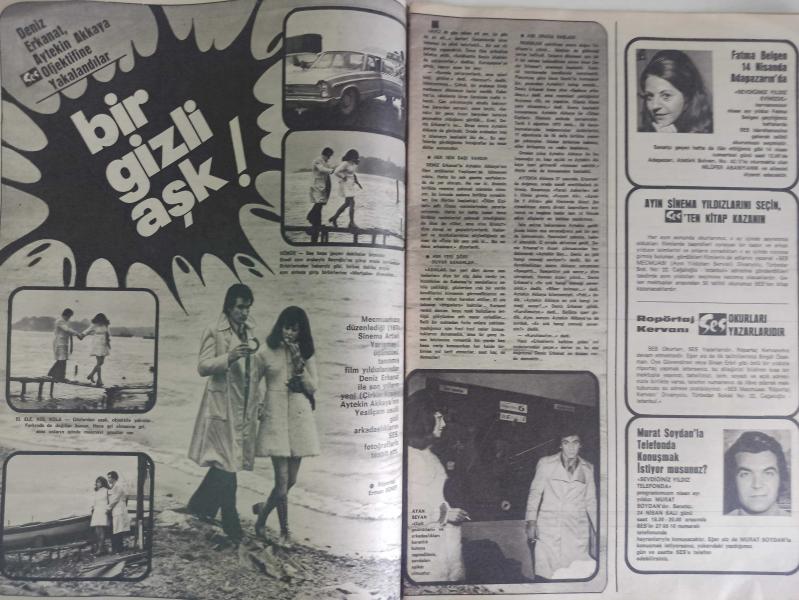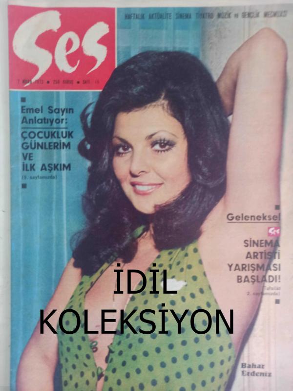 Ses Haftalık Aktüalite Sinema Tiyatro Müzik ve Gençlik Mecmuası Dergisi - 7 Nisan 1973 - Bahar Erdeniz - Tarık Akan - Deniz Erkanat - Aytekin Akkaya - Fatma Belgen - Murat Soydan - Persil Deterjan Reklamı - Emel Sayın - Tülay Munduz - Ayhan Işık - Feridun Çölgeçen - Fatma Girik - Cüneyt Arkın - Bahar Erdeniz - Giuliano Gemma - Katie Christina - Klaus Kinski - Gülriz Sururi - Engin Cezzar - Toto Karaca - Ünol Büyükgönenç - Halit Kakınç Liza Minelli - Marlon Brando - Feri Cansel - Arzu Okay - Hüseyin Kutman- Nisa Serezli - Tolga Aşkıner - Zümra Aycan - Fatma Girik - Cliff Richard - Massimo Raineri - Marlon Brando - Şaşkın Adamın Aşkı Filmi - Yasak Aşk Filmi - Şehvet Kurbanı Filmi - Hikmet Münir Ebcioğlu - Anna Moffo - Sanremo Bitti Gelsin Eurovision fotoğraf ve haberi - Tam Takım Dergi Yıpranma, sararmalar, kupon kesiği ve yırtılmalar zamana bağlı olarak görülebilir