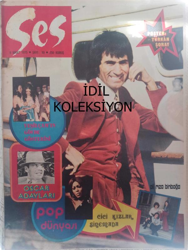 Ses Haftalık Aktüalite Sinema Tiyatro Müzik ve Gençlik Mecmuası Dergisi - 8 Mart 1975 - Sayı:10 - Türkan Şoray - Ali Rıza Binboğa - Cici Kızlar - Ediz Hun - Semiha Yankı - Kemal Ebcioğlu - Yaşar Kekeva - Atilla Kurtbaş - Muazzez Abacı - Fatma Girik - Türkan Şoray - Tarık Akan - Hülya Koçyiğit - Zeki Alasya - Metin Akpınar - Kartal Tibet - Ediz Hun - Necla Nazır - Hale Soygazi - Anne Marie David - Neşe Karaböcek - Müjdat Gezen - Penaten Çocuk Kremi Reklamı - Jack Nicholson - Faye Dunaway - Valerie Perrine - Lenny Bruca - Nilüfer - Füsun Önal - Hıfzı Topuz - Cihan Ünal - David Jansshen - Yılmaz Dağdeviren - Konfor Yatak Reklamı - Adnan Şenses - Ahmet Özhan - Hülya Darcan - Tanju Korel - Mahmut Hekimoğlu - Meral Zeren - Angela Luce - Rosanna Fratello - Valentina Greco - Taner Şener - Tarık Akan - Necla Nazır - Gönül Akkor - Esin Engin - Tina Turner - Füsun Önal - Demis Roussos - Mine Koşan - OMO Deterjan Reklamı - TOFAŞ Araba Reklamı - Tam Takım Dergi Yıpranma, sararmalar, kupon kesiği ve yırtılmalar zamana bağlı olarak görülebilir