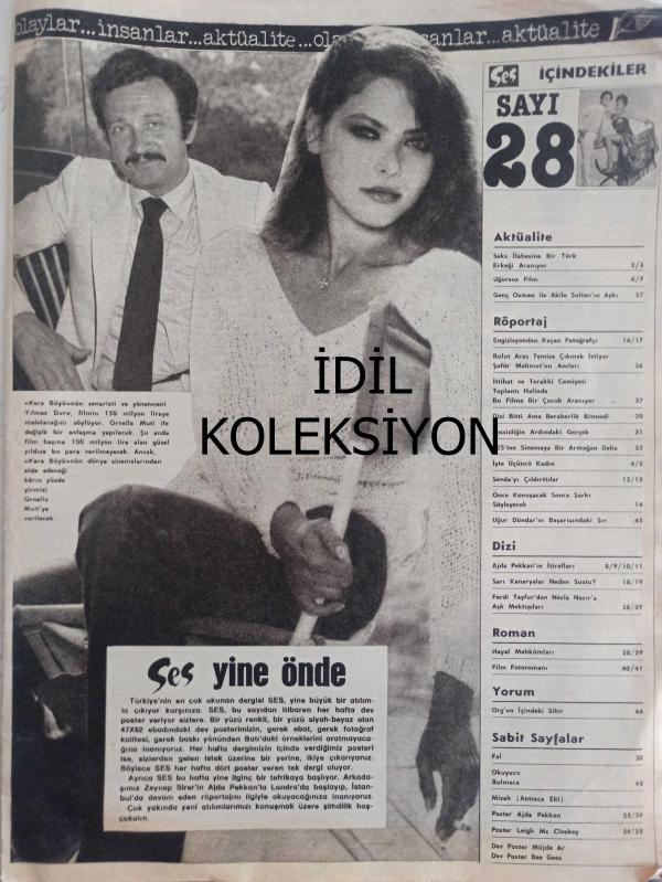 Ses Haftalık Aktüalite Sinema Tiyatro Müzik ve Gençlik Mecmuası Dergisi - Sayı:28 - Yılmaz Duru - Ornella Muti - Zeynep Sirer - Ajda Pekkan - Nükhet Duru - Nil Burak - Orhan Gencebay - Müjde Ar - Sevda Karaca - Pierre Cardin - Kadir İnanır - Akbank Reklamı - Moris Maçoro - Alpay - Zeynep Tedü - Gülcan Karaböcek - Meral Zeren - Cemil Özbayer - Hayal Mahkumları haberi - Tursil Deterjan Reklamı - Türkan Şoray - Ayhan Işık - Star Deterjan Reklamı - Bulut Aras - Mahmut Hekimoğlu - İvan Sokol - Semiha Yankı - Gülay Alp - Rüçhan Çamay - Leyla Sayar - Rüçhan Çamay fotoğraf ve haberi - Dergi Tam Değildir Sadece 24 Sayfası Mevcuttur - Dergi Kapağı Yoktur Yıpranma, sararmalar, kupon kesiği ve yırtılmalar zamana bağlı olarak görülebilir