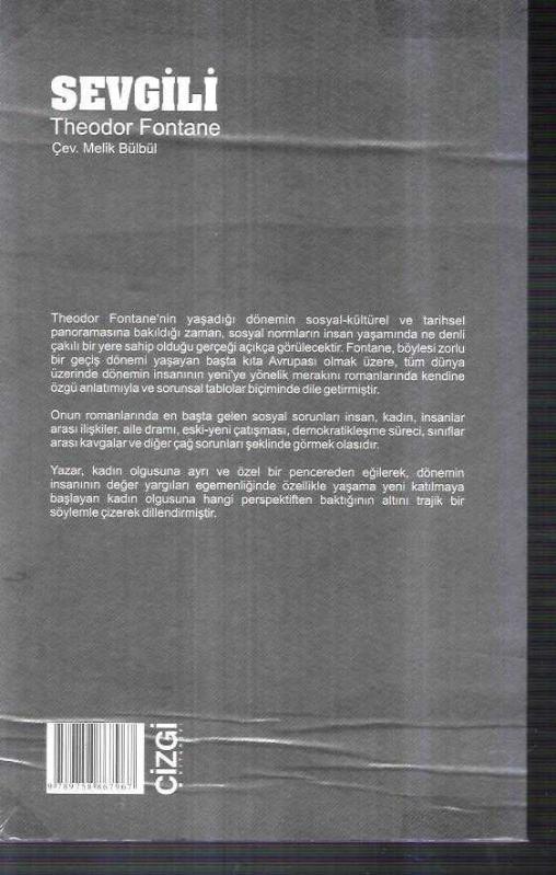 Sevgili, Theodor Fontane tarafından kaleme alınmıştır. Kitap 2007 yılında Çizgi Kitabevi Yayınları tarafından [Konya] yayınlanmıştır. Bu baskının çevirisi Melik Bülbül tarafından yapılmıştır. 183 sayfadır. Sayfa bilgisi 2. hamur olarak belirtilmiştir. Sevgili adlı eser Türkçe dilindedir.