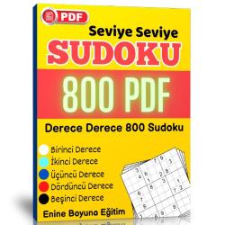 Seviye Seviye PDF Sudoku Kitabı (800 Sudoku) PDF 800 Seçilmiş sudokudan oluşmaktadır. Birinci dereceden başlayarak beşinci dereceye kadar kategorize edilmiştir. Her bir derecede 160 sudoku yer almaktadır. Sudokuların çözümleri dijital PDF sayfalarının sonunda yer almaktadır. Sudoku çözme teknikleri ve eğitimlerinin bulunduğu giriş bölümü bulunmaktadır. Satın aldığınızda tarafınıza 5 derecede 5 PDF dosyası gönderilecektir. Herkes alabilsin diye PDF formatında hazırladık. Ürünü satın aldığınızda size indirme linki ve şifresi gönderilmektedir. Sudoku Nasıl Oynanır? Oyunun amacı, dokuzar hücreden oluşturulmuş, 9 eşit kareye bölünmüş bir alanda, rakamları hiçbir şekilde tekrar etmeyecek şekilde dizebilmektir. Her satır ve her sütunda, 1’den 9’a kadar olan rakamları sadece bir defa kullanıp dizebilmeyi başarmak gerekir. Aynı şekilde kalın ve belirgin çizgilerle ayrılmış her kutunun içinde de, 1’den 9’a kadar olan rakamlar birer defa kullanılmalıdır. Sudoku Kuralları Bütün sudoku çeşitleri için üç temel kural geçerlidir. * Her satırda tüm rakamlar bulunmalı ve bu rakamlar sadece birer defa yer almalıdır. * Her sütunda tüm rakamlar bulunmalı ve bu rakamlar sadece birer defa yer almalıdır. * Her bölgede tüm rakamlar bulunmalı ve bu rakamlar sadece birer defa yer almalıdır. Sudokunun Yararları Nelerdir? Sudoku zihin açan bir oyundur. Düzenli oynayanlarda beyindeki kıvrımları arttırdığı, olaylara farklı bakış açılarıyla baktırdığı, problem çözme yeteneği kazandırdığı, kolay çözüm yolları bulma konusunda bireyleri geliştirdiği gözlemlenmiştir. Konsantrasyonu arttırır. Zekayı geliştirir. Yaratıcılığı arttırır. Zihni dinlendirir, stresi azaltır. Kuralları çok kolaydır. Süre tutarak ya da zorluk seviyesini arttırarak kendinizle yarışabilirsiniz. Matematik problemlerini çözme becerisini arttırır. Hafızayı güçlendirir. Unutkanlığı azaltır.