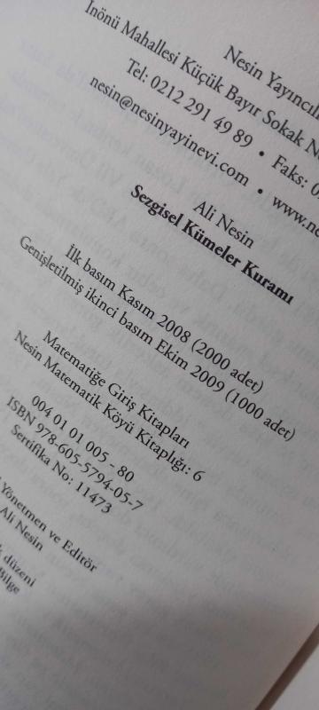 "Bu kitap bir dizinin ilk kitabıdır. Dizinin amacı, matematiğin en temel kavramlarını, sezgisel olarak, özellikle genç okura sunmaktır. Üniversitede matematik ya da herhangi bir fen dalı eğitimi görmek isteyen liselilere, lise matematik öğretmenlerine, hatta üniversitede okuyan gençlere yararlı olacağını düşünüyorum. Kümeler kuramını çok daha soyut ve matematiksel bir başka kitabımızda sunacağız. Burada, kümeler kuramına sezgisel bir başlangıç yapmayı amaçlıyoruz."