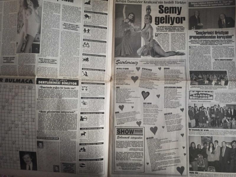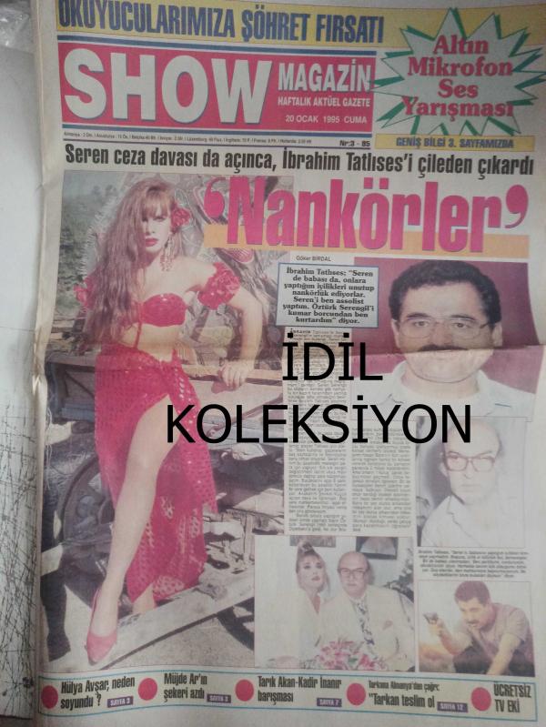 Show Magazin Haftalık Aktüel Gazetesi - 20 Ocak 1995 - Sayı:95 - Seren Serengil - İbrahim Tatlıses - Özlem Ersoy - Tayyar Yıldız - Soner Arıca - Tünay Ürek - Kibariye - Hülya Avşar - Güner Ümit - Seden Gürel - Atilla Özdemiroğlu - Aykut Oray - Fatih Kısaparmak - Linda Evangelista - Rıfat Özbek - Bill Clinton - Ali Poyrazoğlu - Kadir İnanır - Tarık Akan - Onat Kutlar - Kamil Öztürk - Bulut Aras - Gürcan Sarıyer - Mustafa Er - Murat Leblebici - Yaşar Nuri Öztürk - Ali Rıza Aktaş - Canan Aydn - Nevzat Uyanık - Ali Çınar - Gülden Kalmaz - Süleyman Karaduman - Nükhet Duru - Aşkın Nur Yengi - Zerrin Özer - Gurbetçi Hakan - Binnaz Avcı - Mustafa Sandal - Adnan Şenses - Muazzez Abacı - Efgan Efekan - Yusuf Sezgin - Sibel Tüzün - Tarkan - Gülgün Feyman - Banu Alkan - Neco - Güngör Bayrak fotoğraf ve haberi - Tam Takım Gazete Yıpranma, sararmalar, kupon kesiği ve yırtılmalar zamana bağlı olarak görülebilir