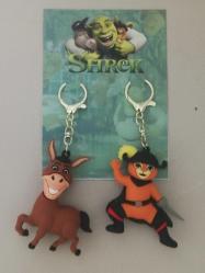 Shrek filminin karakterlerinden eşek çizmeli kedi nin büyük boy figür anahtarlık ları 2 li Sıfır set koleksiyon dekor hediye nostalji tasarım süs hobi eğlence vintage aksesuar promosyon reklam Hediyelik dekorluk oyuncak