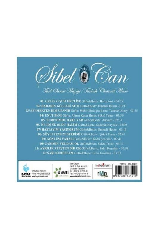 Sibel Can - Türk Sanat Müziği (CD) 1. ; Gelse O Şuh Meclise Güfte & Beste: Hafiz Post 2. ; Baharın Gülleri Açtı Güfte & Beste: Dramalı Hasan 3. ; Sevmekten Kim Usanır Güfte: Mühir Ebcioğlu Beste: Teoman Alpay 4. ; Unut Beni Güfte: Ahmet Kaçar Beste: Şükrü Tunar 5. ; Yemenimde Hare Var Güfte & Beste: Anonim 6. ; Ne İdi Ne Oldu Halim Güfte & Beste: Sadettin Kaynak 7. ; Hastayım Yaşıyorum Güfte & Beste: Dramalı Hasan 8. ; Söyleyemem Derdimi Güfte & Beste: Şükrü Tunar 9. ; Gönlüm Yaralı Güfte & Beste: Kadri Şençalar 10. ; Canımın Yoldaşı Ol Güfte & Beste: Şükrü Tunar 11. ; Ayrılık Ateşten Bir Ok Güfte & Beste: Fahri Kayahan 12. ; Sarı Kurdelem Güfte & Beste: Fahri Kayahan; Marka: Bayar Müzik Model Kodu: tsm Barkod: 8697980741515