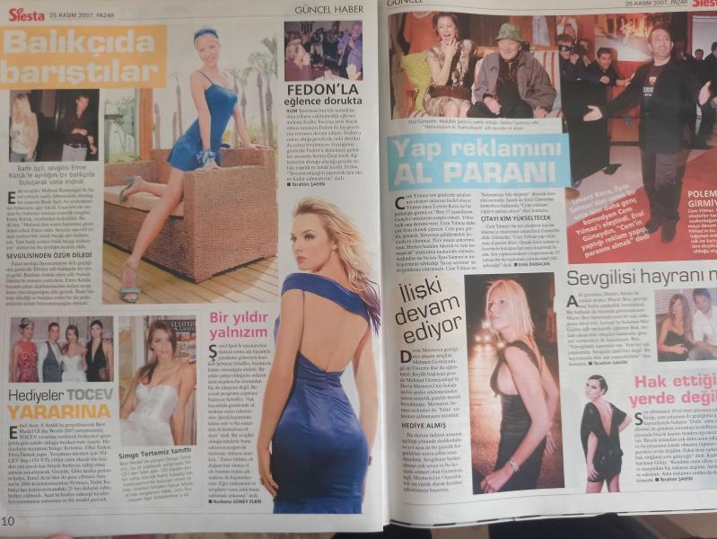 Siesta Haftalık Aktüalite Sinema Tiyatro Müzik ve Magazin Dergisi - 25 Kasım 2007 - Dilek Çelik - Hüsnü Şenlendirici - Ebru Şallı - Barış Kocaoğlu - Irmak Ünal - Cihan Ünal - Türkan Şoray - Hande Ataizi - Serdar Ortaç - Helin Avşar - Banu Zorlu - Metin Özülkü - Gamze Özçelik - Levent Süren - Tatiana Marinescu - Pınar Çınar - Ebru Polat - Sema Çelebi - İbrahim Tatlıses - Deniz Seki - Hüsnü Şenlendirici - Kerem Alışık - Çağla Şikel - Emre Altuğ - Leonardo Di Caprio - Emre Kütük - Bade İşçil - Şenol İpek - Simge Tertemiz - Erol Günaydın - Abdullah Şahin - Levent Kırca - Cem Yılmaz - İlyas Salman - Demet Akalın - Murat Boz - Derin Mermerci - Gülay Eralp - Özlem Önal - Tuba Ünsal fotoğraf ve haberi - Tam Takım Dergi Yıpranma, sararmalar, kupon kesiği ve yırtılmalar zamana bağlı olarak görülebilir