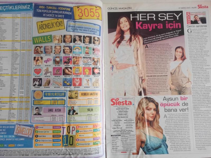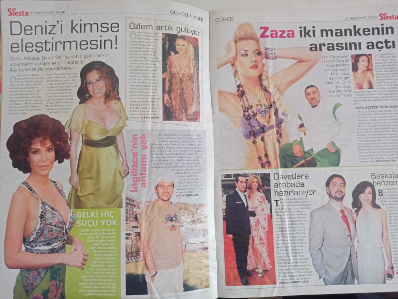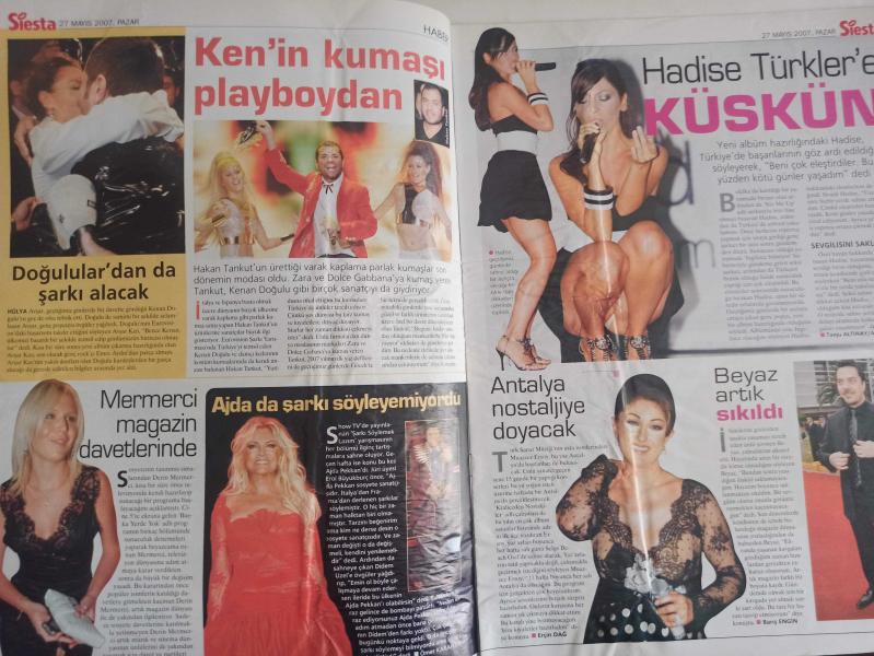Siesta Haftalık Aktüalite Sinema Tiyatro Müzik ve Magazin Dergisi - 27 Mayıs 2007 - Berna Arıcı - Aysun Kayacı - Barış Kocaoğlu - Leyla Kömürcü - Hadise - Muazzez Ersoy - Ajda Pekkan - Hülya Avşar - Kenan Doğulu - Hakan Tankut - Kenan Doğulu - Lerzan Mutlu - Okan Bayülgen - Pınar Altuğ - Yağmur Atacan - Nurgül Yeşilçay - Bülent Ersoy - Lerzan Mutlu - Okan Bayülgen - Çelik - Buket Saygı - Tülin Şahin - Ece Gürsel - Deniz Seki - Şenay Akay - Özlem Savaş - Çiğdem Kayalı - Eda Taşpınar - Erol Kaynar - Esin Maraşlıoğlu - Melisa Mızraklı - Güzide Duran - Özge Ulusoy - Demet Akalın - Güzide Duran fotoğraf ve haberi - Tam Takım Dergi Yıpranma, sararmalar, kupon kesiği ve yırtılmalar zamana bağlı olarak görülebilir