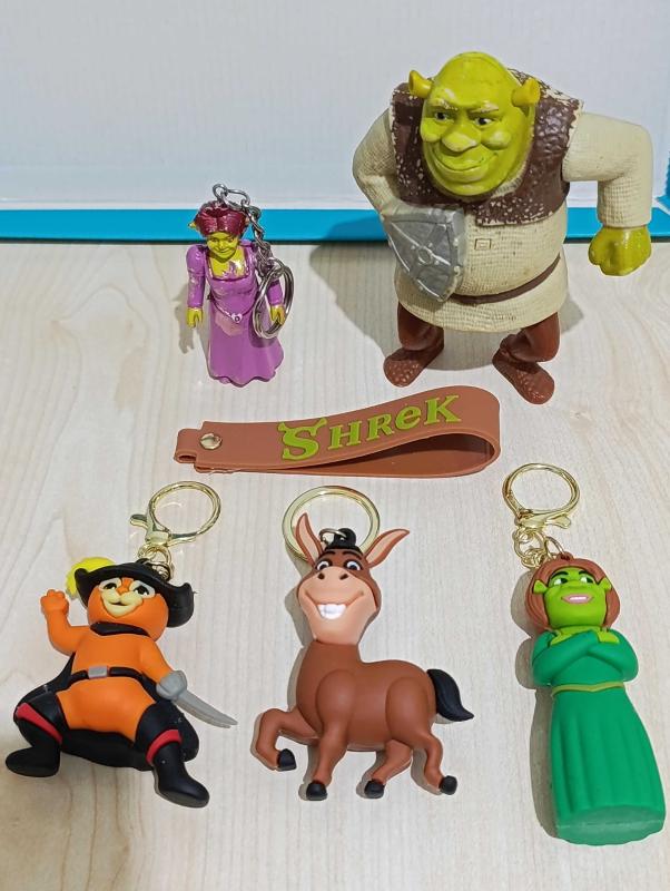 Sıfır ve 2. El figür oyuncak anahtarlık süs set. Shrek Fiona çizmeli kedi eşek koleksiyon dekor tasarım hediye vintage retro aksesuar nostalji reklam promosyon hobi minyatür diorama başlıklı antika/koleksiyon objesinin menşei belirtilmemiştir. Objenin ait olduğu dönem bilinmeketedir.