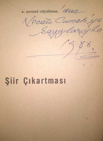Şiir Çıkartması (Necati Cumalı'ya İmzalı), A. Nevzad Odyakmaz (Nevzad Sudi Odyakmaz) tarafından kaleme alınmıştır. Kitap 1988 yılında Kerem Yayınları tarafından yayınlanmıştır. Şiir Çıkartması (Necati Cumalı'ya İmzalı) adlı eser Türkçe dilindedir.
