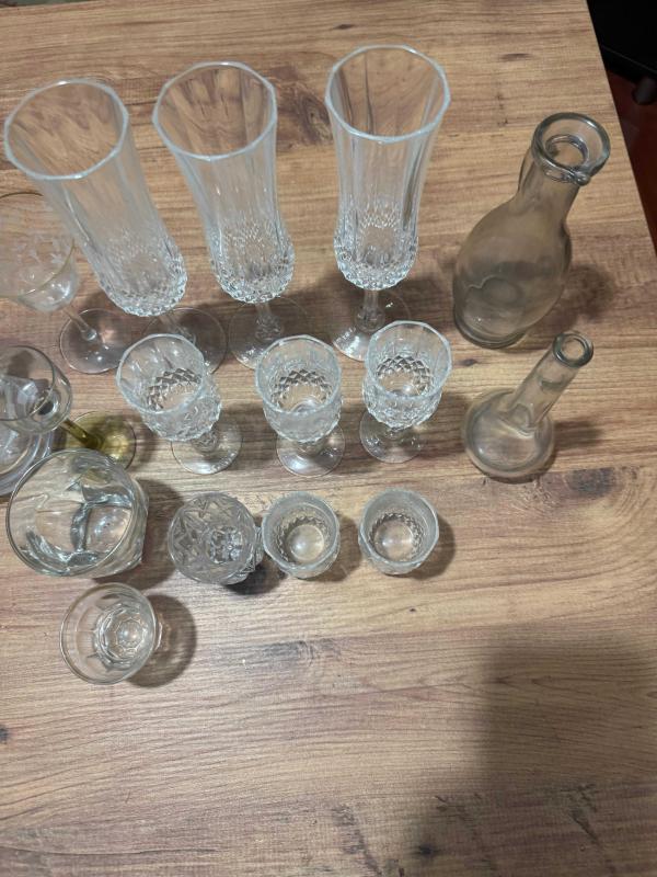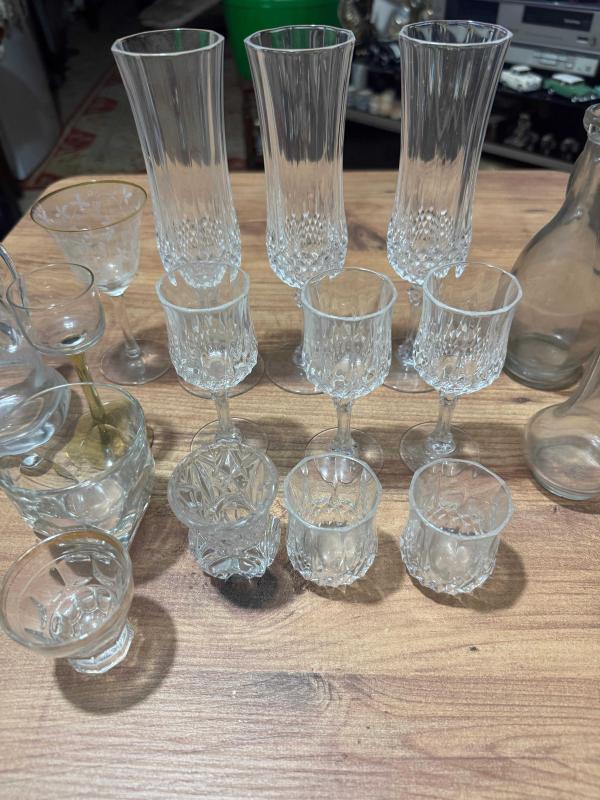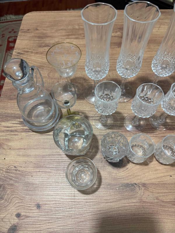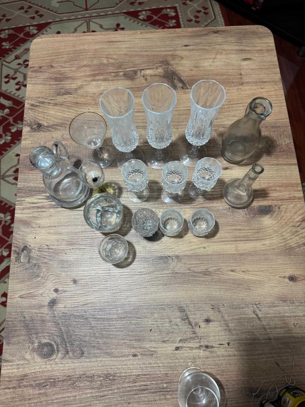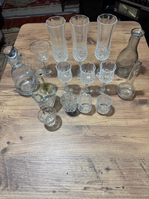 Şık Kristal Kesme Cam ve Sunum Takımı (Tertemiz) Evinize zarafet katacak, çok az kullanılmış ve hiçbir kusuru (çatlak, kırık, leke) bulunmayan cam sunum seti. Farklı içecek sunumları ve dekoratif kullanım için ideal, nostaljik ve şık parçalardan oluşmaktadır. 3 Adet Kristal Kesme Kadeh Uzun formlu, zarif işleme detaylı. 3 Adet Kristal Ayaklı Küçük Kadeh Kısa formlu, elmas kesim desenli. 3 Adet Kristal Shot Bardağı Ağır tabanlı, şık dokulu. 2 Adet Cam Karaf Sürahi Farklı boylarda, şık sunumlar için. 1 adet altın yaldız işlemeli kadeh ve dekoratif cam objeler. Tertemiz, vitrin ürünü kadar yeni. Yüksek kaliteli cam ve kristal kesme. İster sofralarınızda kullanın, ister vitrininizde dekoratif olarak sergileyin. Toplam 16 Adet
