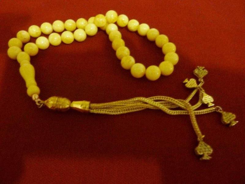 Ürün grubu: Tesbihler-Sıkma kehribar, ateş kehribar tesbihler Sıkma kehribar, altın renkli püsküllü, 4 saçaklı 33'lük tesbih. İmame dahil 20cm. Püskül dahil 33cm. 33'lük kehribar tesbih, 99'luk tesbih, balık dişi tesbih, sıkma kehribar tesbih, katalin tesbih, fildişi tesbih, boynuz tesbih, kemik tesbih, antika tedbih, 33'lük tesbih, 99'luk tesbih, 33'lük kemik tesbih, 99'luk fildişi tesbih, sıkma katalin tesbih, katalin 33 lük tesbih, sıkma kehribar tesbih, gümüş imameli tesbih, gümüş püsküllü tesbih, katalin tesbih, 33'lük katalin tesbih, hardal rengi katalin tesbih, sarı katalin tesbih, deve kemiği tesbih, kazaz kamçılı, kazaz püsküllü, kazaz gümüş püskül, has kehribar tesbih, osmanlı kehribar tesbih, ateş kehribar tesbih, damla kehribar tesbih, oltu taşı tesbih, kuka tesbih