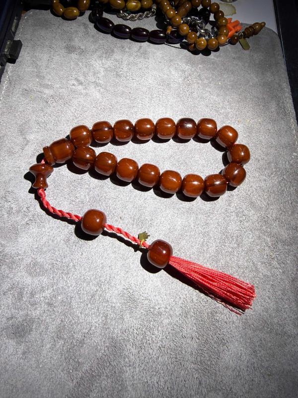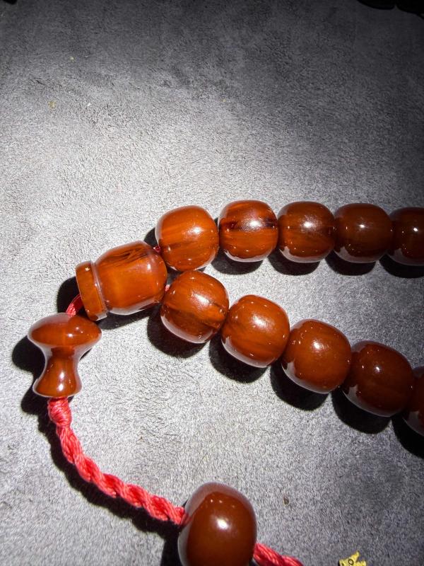Damarlı yapıda sıkma kehribar efe boy maskot tesbih. 13 mm tane boyu. Ürün sıfırdır.