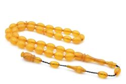 Sinan Usta Yapımı Beyzi Bilek Boy Hareli Krem Rengi Sıkma Kehribar Tesbih