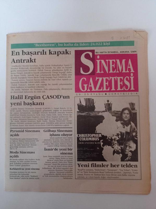 Sinema Gazetesi - 19 25 Eylül 1992 - Christopher Columbus - Gazap Kuşları - Taş Yılları - Tampopo - Seni Seviyorum Rosa - Mustafa Ziya Ülkenciler - Işıl Özgentürk - Themis Bazaka adlı eser Türkçe dilindedir.