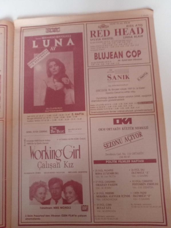 Sinema Gazetesi - 25 Eylül 1 Ekim 1989- Sayı 2- La Luna Filmi - Bernardo Bertolucci- Kontes- Dracula - Sonsuz Matem - Sinema Yazarı Sungu Çapan - Jack Nicholson - Meryl Streep - Politik Filmler Haftası - Potemkin Zırhlısı adlı eser Türkçe dilindedir.