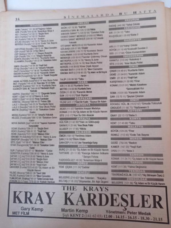Sinema Gazetesi - 4 Mayıs 10 Mayıs 1991 - Sayı 86 - Yeşil Kart- Avalon- Umud'a Yolculuk- Kurtlarla Dans- Kray Kardeşler - Henry Ve June Filminden Bir Kare - Fred Ward Uma Thurman Fotoğrafı - Makas Eller Hem Yıkıcı Hem Yaratıcı - Cennette Bir Hergele Var- Kevin Costner - Cannes film festivali adlı eser Türkçe dilindedir.