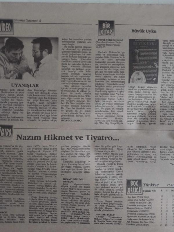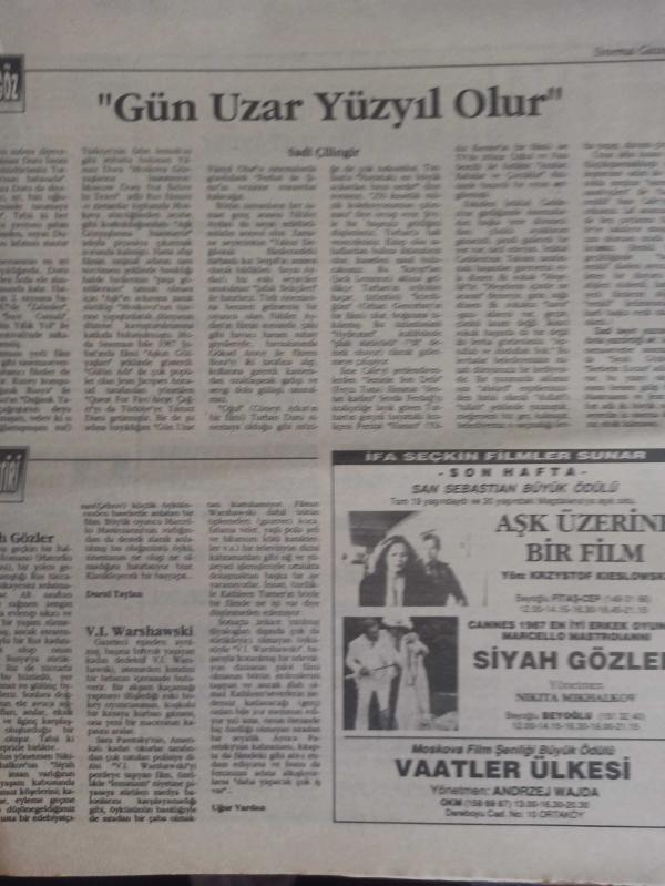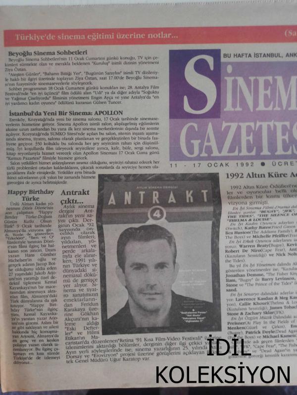 Sinema Gazetesi Filmcilik ve Sinemacılık Dergisi - 11-17 Ocak 1992 - Beyoğlu Sinema Sohbetleri - İstanbul'da Yeni Bir Sinema: Apollon - 1992 Altın Küre Adayları - Evde 5 Başına Filmi - Christina Applegate - Joanna Cassidy - Ağustos'ta Rapsodi Filmi - Akira Kurosawa - Richard Gere - Alternatif Bir Film: Vaatler Ülkesi Filmi - Andrzej Wajda: Çağın Kanayan Vicdanı - Gelecek Üzerine Notlar - Ali Hakan - Tatar Ramazan Filmi - Kadir İnanır - Esin Moralıoğlu - 3 Belalılar Filmi - Harley Davidson & Marlboro Man Filmi - Banu Kahraman - Calamity Jane de Bu Günleri Görseydi - Nazım Hikmet ve Tiyatro - Büyük Uyku - Sadi Çilingir - ''Gün Uzar Yüzyıl Olur'' - Fida Film Haftanın Filmleri - Kokuşmuş Hayat Filmi - Hot Shots Filmi - İkiz Kan Filmi - Van Damme - Başkalarının Parası Filmi - Danny De Vito fotoğraf ve haberi - Tam Takım Dergi Yıpranma, sararmalar, kupon kesiği ve yırtılmalar zamana bağlı olarak görülebilir