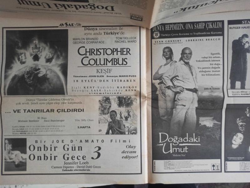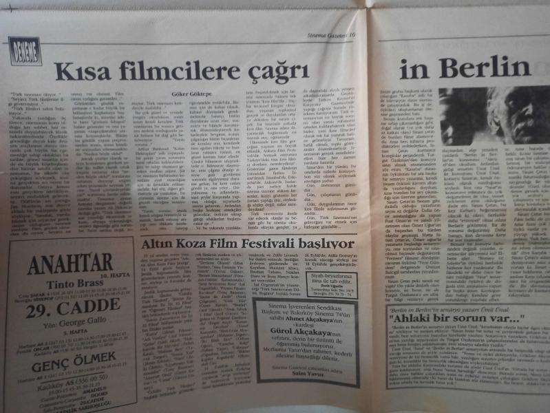 Sinema Gazetesi Filmcilik ve Sinemacılık Dergisi - 12-18 Eylül - Antrakt 1 Yaşında - Flaş Filmler Fırtınası Başlıyor - ''Alien 3'' Filmi - Sınır ya da Berlin - 70 Yıl Önce Bir Anti-Militarist - Bu Yıl ''Portakal'' On Dilim - Kısa Filmcilere Çağrı - İn Berlin - Gecenin Ötesi Filmi - Van Damme Efsanesi Filmi - Hit Man - Seni Seviyorum Rosa - Beethoven - Anahtar - Lethal Weapon 3 Filmi - Geçmişe Yolculuk Filmi - Doğadaki Umut Filmi - Christopher Columbus Filmi - Onbir Gün Onbir Gece 3 Filmi fotoğraf ve haberi - Tam Takım Dergi Yıpranma, sararmalar, kupon kesiği ve yırtılmalar zamana bağlı olarak görülebilir