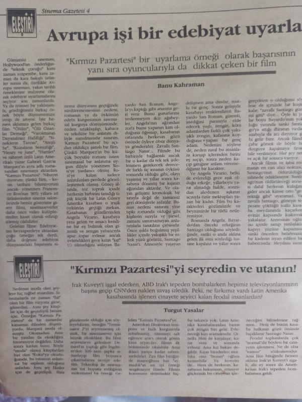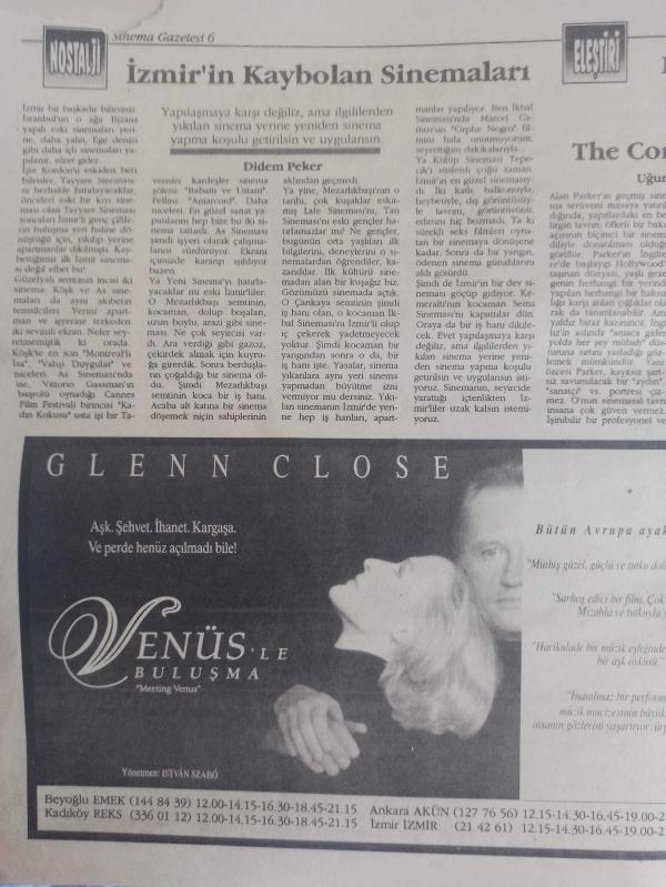 Sinema Gazetesi Filmcilik ve Sinemacılık Dergisi - 21-27 Aralık 1992 - ''Camdan Kalp'' e Bir Uluslararası Ödül Daha- Thelma ve Louise ile Venüs'le Buluşma - Ağustos'ta Rapsodi Filmi - Richard Gere - Red it Filmi - Terence Hill - Thelma ve Louise Filmi - Avrupa İşi Bir Edebiyat Uyarlaması - ''Kırmızı Pazartesi''yi Seyredin ve Utanın - Sanatçı Dünyalarında Bir Gezinti: Venüs'le Buluşma - Uğur Vardan - İzmir'in Kaybolan sinemaları - Halbuki Biz Onları Çok Sevmiştik: The Commitments Filmi - Uğur Vardan - Kaliteli Bir Anatür: ''Hızlı Soyguncu'' filmi - Tiyatrolarda Bu Hafta - Dehşetin Nefesi - Ateş Üstünde Yürümek Filmi - Hülya Aksular - Yılmaz Zafer - Kürşat Alnuaçık - Semiha Berksoy - Erdoğan Akduman - Genç Ölmek - Sonsuza Yürümek - Kuzuların Sessizliği - Kendini Arayan Adam - The İndecent Woman - Kuraldışı Kadın - Hızlı Soyguncu Filmi - Tom Selleck - Jane Saymour - Şafakta Buluşalım - 3 Belalılar Dönüyor Filmi - Kenneth Goodman - Wayne Archer - İkiz Kan Filmi - Van Damme - Gençlik Ateşi Filmi - Alan Parker fotoğraf ve haberi - Tam Takım Dergi Yıpranma, sararmalar, kupon kesiği ve yırtılmalar zamana bağlı olarak görülebilir