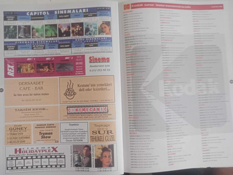 Sinema Gazetesi Haftalık Antrakt Dergisi Eki - 16-22 Ekim 1998 - The Truman Show - Jim Carrey - Larry King - Kaçıklık Diploması - Ayda Aksel - Selçuk Yöntem - Meriç Başaran - Kenan Bal - Güler Ökten - Taner Barlas - Kusursuz Cinayet - A Perfect Murder - Michael Douglas - Gwyneth Paltrow - Viggo Mortensen - Ayda Aksel - 35. Antalya Film Festivali - Catherine Deneuve - Tom Hanks - Tunç Başaran - Ayşe Nil - Kaçıklık Diploması - ''Aramıza Hoşgeldin '' - Sinepop Sineması - On Dakika Ara - Gizemli Şehir Filmi - Rufus Sewell - Kiefer Sutherland - Jennifer Connelly - The Truman Show Filmi - Jim Carrey - Laura Linney - Ed Harris - Holland Taylor - Box Office - İstanbul Sinemalarında Bu Hafta - Capitol Sinema fotoğraf ve haberi - Tam Takım Dergi Yıpranma, sararmalar, kupon kesiği ve yırtılmalar zamana bağlı olarak görülebilir