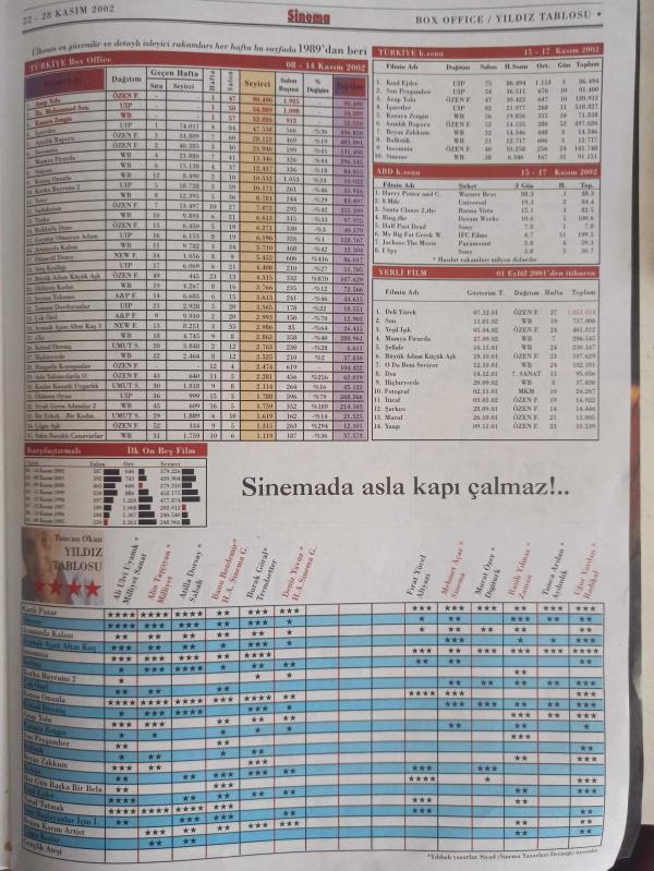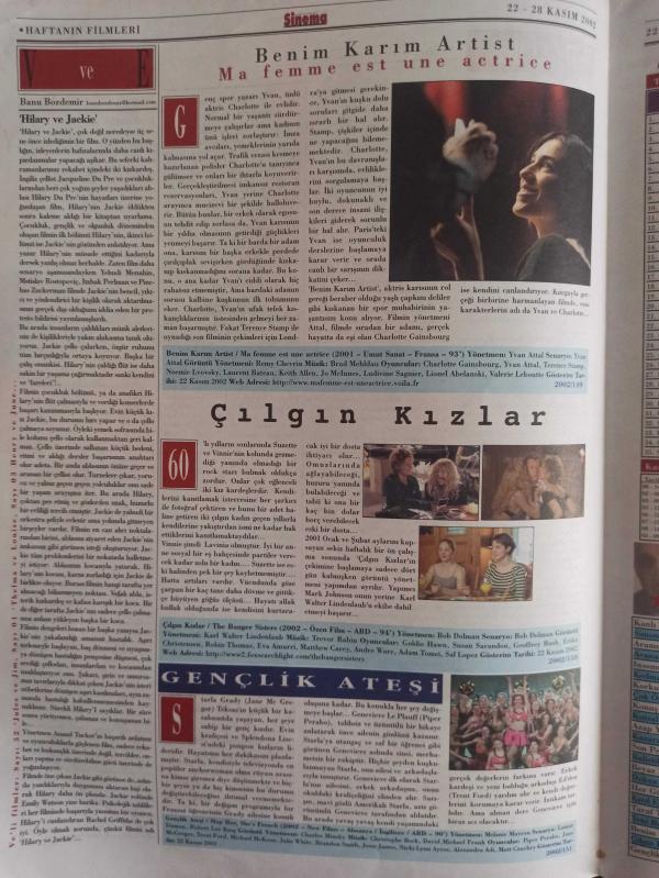 Sinema Gazetesi Haftalık Antrakt Dergisi Eki - 22-28 Kasım 2002 - Sayı:4 - Benim Karım Artist Filmi - Charlotte Gainsbourg - Yvan Attal - Berlin Film Festivali Ödülü - Tek Cümle - Sinderella - Çılgın Kızlar Filmi - Goldie Hawn - Susan Sarandon - Geoffrey Rush - Erika Christensen - Gençlik Ateşi Filmi - Piper Perabo - Jane McGregor - Trent Ford - Julie White - Sinemada Asla Kapı Çalmaz! - Tuncan Okan - Dönüş Yok Filmi - Bellucci Cassel - Kadıköy Sinema Tek - Harry Potter: Sırlar Odası Filmi - Kenneth Branagh - John Cleese - Robbie Coltrane - Warwick Davis fotoğraf ve haberi - Tam Takım Dergi Yıpranma, sararmalar, kupon kesiği ve yırtılmalar zamana bağlı olarak görülebilir