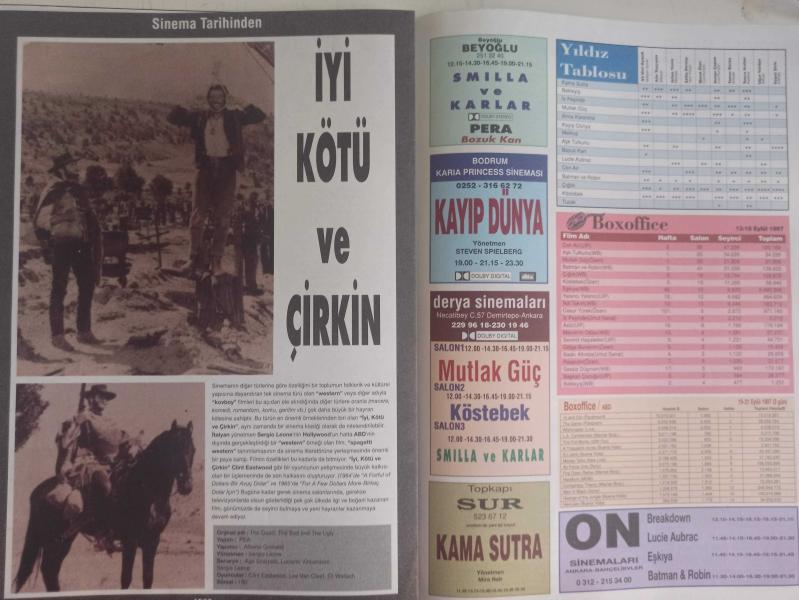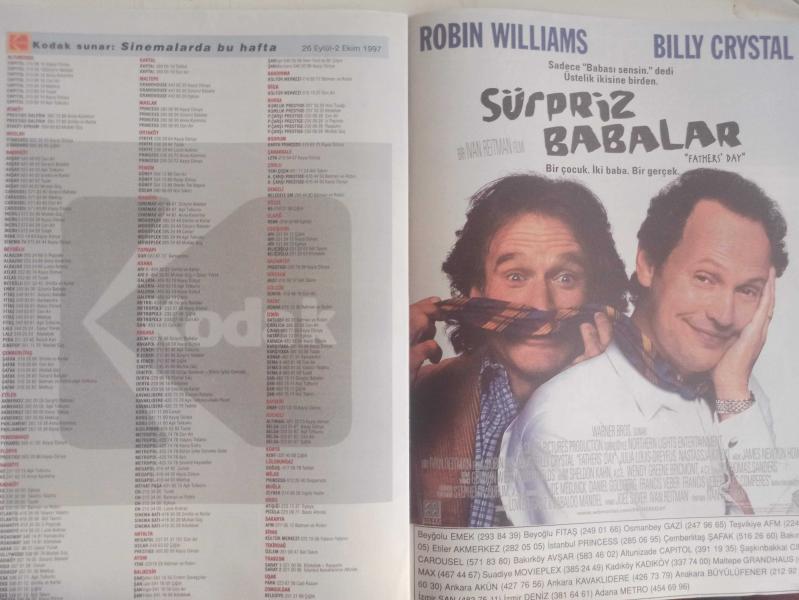 Sinema Gazetesi Haftalık Antrakt Dergisi Eki - 26 Eylül - 2 Ekim 1997 - Sayı:47 - Tuzak Filmi - Kurt Russell - Jonathan Mostow - MIB Siyah Giyen Adamlar - Tommy Lee Jones - Will Smit - Daniel Auteuil - Eric Boucher - Patrice Chereau - Smilla ve Karlar Filmi - Julia Ormond - Gabriel Byrne - Richard Harris - Vanessa Redgrave - Robert Loggia - Aşk Tutkunu Filmi - Meg Ryan - Matthew Broderick - Mektup Filmi - Tarık Akan - Zişan Uğurlu - Cüneyt Gökçer - Ahmet Mekin - Suna Selen - Jessica Campbell - Sürpriz Babalar Filmi - Robin Williams - Billy Crystal - Nastassja Kinski - Charlie Hofheimer - Tuzak Filmi - Kurt Russell - Kathleen Quinian - J.T. Walsh - Lucie Aubrac Filmi - Carole Bouquet - Daniel Auteuil - Mutlak Güç Filmi - İyi Kötü ve Çirkin Filmi - Clint Eastwood - Lee Van Cleef - Eli Wallach - Sürpriz Babalar Filmi - Robin Williams - Billy Crystal - Jurassic Park: Kayıp Dünya Filmi - Steven Speilberg fotoğraf ve haberi - Tam Takım Dergi, M. Erol Ağakay tarafından kaleme alınmıştır. Kitap 1997 yılında Mimeray Ofset Basım tarafından [İstanbul] yayınlanmıştır. 16 sayfadır. Sinema Gazetesi Haftalık Antrakt Dergisi Eki - 26 Eylül - 2 Ekim 1997 - Sayı:47 - Tuzak Filmi - Kurt Russell - Jonathan Mostow - MIB Siyah Giyen Adamlar - Tommy Lee Jones - Will Smit - Daniel Auteuil - Eric Boucher - Patrice Chereau - Smilla ve Karlar Filmi - Julia Ormond - Gabriel Byrne - Richard Harris - Vanessa Redgrave - Robert Loggia - Aşk Tutkunu Filmi - Meg Ryan - Matthew Broderick - Mektup Filmi - Tarık Akan - Zişan Uğurlu - Cüneyt Gökçer - Ahmet Mekin - Suna Selen - Jessica Campbell - Sürpriz Babalar Filmi - Robin Williams - Billy Crystal - Nastassja Kinski - Charlie Hofheimer - Tuzak Filmi - Kurt Russell - Kathleen Quinian - J.T. Walsh - Lucie Aubrac Filmi - Carole Bouquet - Daniel Auteuil - Mutlak Güç Filmi - İyi Kötü ve Çirkin Filmi - Clint Eastwood - Lee Van Cleef - Eli Wallach - Sürpriz Babalar Filmi - Robin Williams - Billy Crystal - Jurassic Park: Kayıp Dünya Filmi - Steven Speilberg fotoğraf ve haberi - Tam Takım Dergi adlı eser Türkçe dilindedir.