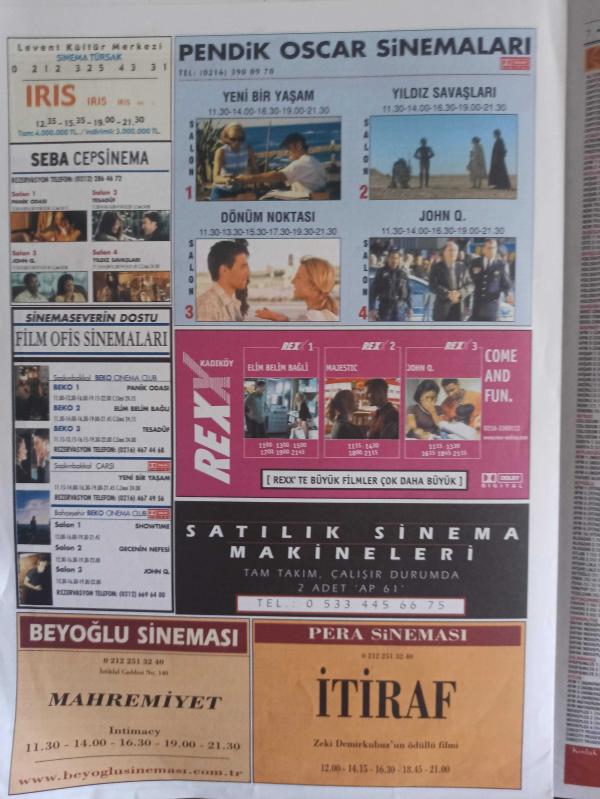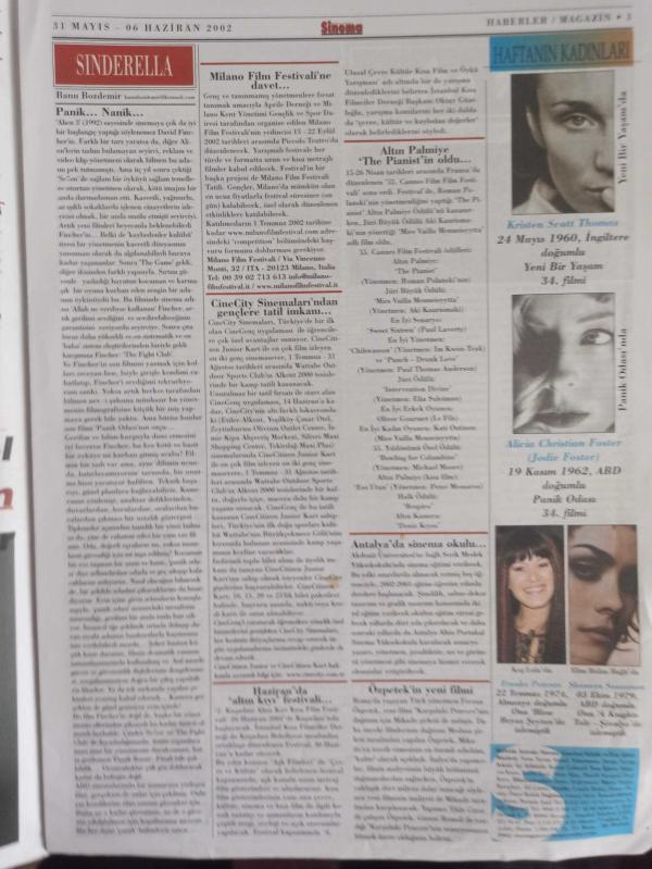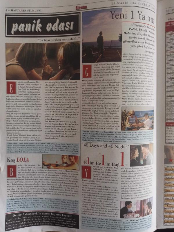 Sinema Gazetesi Haftalık Antrakt Dergisi Eki - 31 Mayıs - 6 Haziran 2002 - Sayı:31 - Panik Odası Filmi - Jodie Foster - Forest Whitaker - Dwight Yoakam - Jared Leto - Kristen Stewart - 6. Uluslararası Çevre Filmleri Festivali Başlıyor - Sinderella - Banu Bozdemir - Kristen Scott Thomas - Alicia Christian Foster - Franka Potente - Shannyn Sossamon - Yeni 1 Yaşam Filmi - Kevin Kline - Hayden Christensen - Elim Belim Bağlı Filmi - Josh Hartnett - Shannyn Sossamon - Paulo Costanzo - Tuncan Okan - Yıldız Tablosu - Pendik Oscar Sinemaları - Sinemalarda Bu Hafta - JBL Hoparlör Reklamı fotoğraf ve haberi - Tam Takım Dergi Yıpranma, sararmalar, kupon kesiği ve yırtılmalar zamana bağlı olarak görülebilir