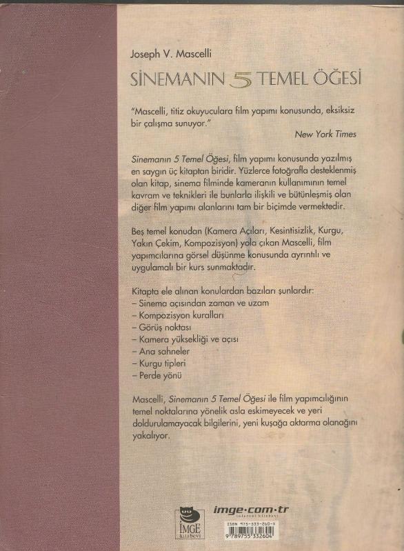 Sinemanın 5 Temel Öğesi, Joseph V. Mascelli tarafından kaleme alınmıştır. Kitap 2007 yılında İMGE tarafından [İSTANBUL] yayınlanmıştır. Bu baskının çevirisi Hakan Gür tarafından yapılmıştır. 264 sayfadır. Sinemanın 5 Temel Öğesi adlı eser Türkçe dilindedir.