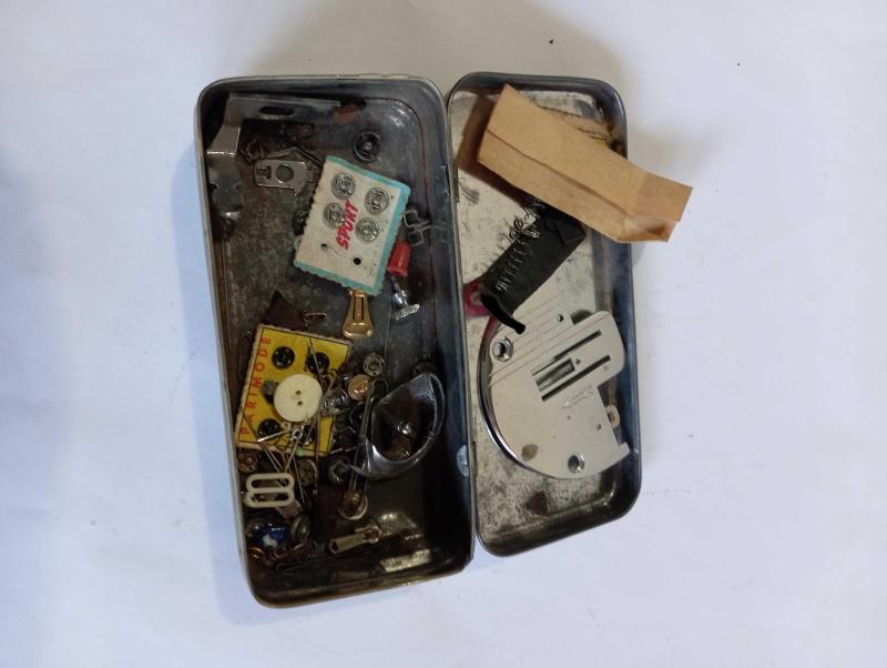 İçinde birkaç parça dikis makinesi parçası ile beraber İyi durumda