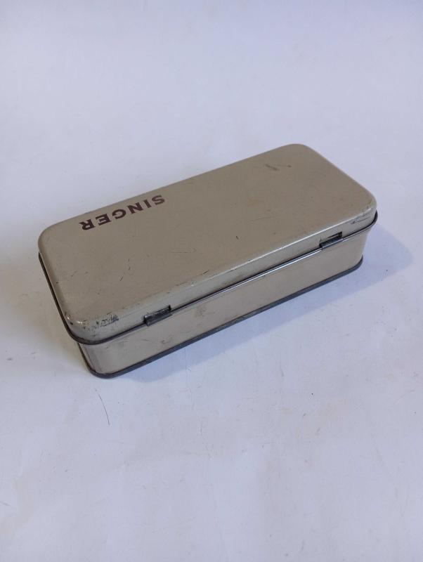 Singer dikiş makinesi kutusu metal başlıklı antika/koleksiyon objesi Türkiye menşe’lidir. Objenin ait olduğu dönem bilinmeketedir.