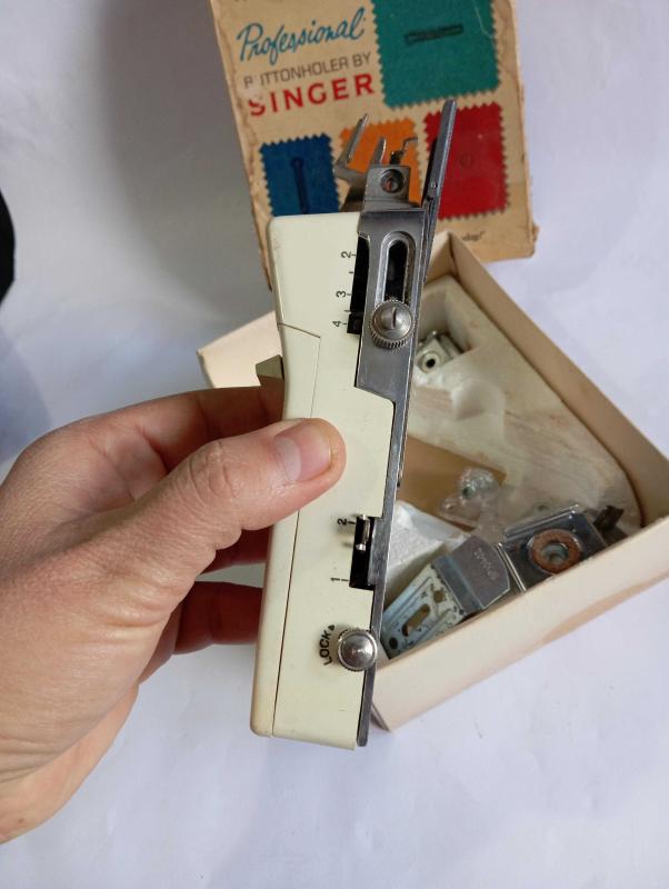 Singer dikiş makinesi parçası kutusunda başlıklı antika/koleksiyon objesi Amerika menşe’lidir. 1950-1999 arası dönemine aittir.