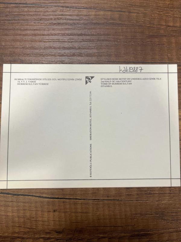 Sıraltı tekniğinde stilize gül motifli İznik çinisi 16.yy 2 . Yarısı Hürrem sultan türbesi Kartpostal 15x10 ebatında başlıklı ürün, Efemera, Müzik, Sinema > Diğer Efemera kategorisi altında İkinci El olarak satılmaktadır.