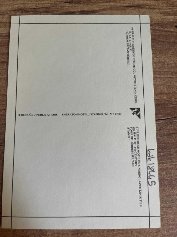 Sıraltı tekniğinde stilize gül motifli iznik çinisi 16.y.y. 2. Yarısı Hürrem sultan türbesi Kartpostal 17 x12 cm ebatında başlıklı ürün, Efemera, Müzik, Sinema > Diğer Efemera kategorisi altında İkinci El olarak satılmaktadır.