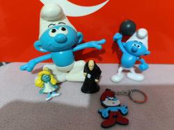 Şirinler Şirine Gargamel figür oyuncak ve şirin Baba anahtarlık süs set koleksiyon dekor tasarım hediye vintage retro nostalji