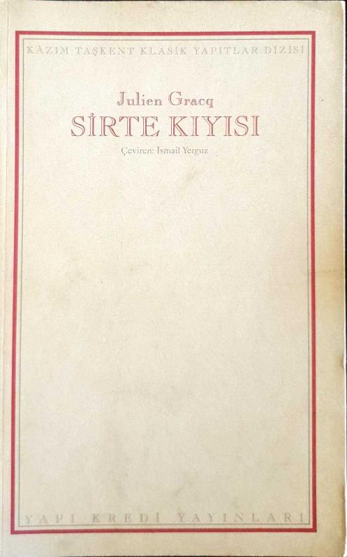 Sirte Kıyısı (Kazım Taşkent Klasik Yapıtlar Dizisi) (İlk Baskı), Julien Gracq tarafından kaleme alınmıştır. Kitap 1995 yılında Yapı Kredi Yayınları YKY tarafından [İstanbul] yayınlanmıştır. Satışta olan kitap, yayınevinin 1. baskısıdır. Bu baskının çevirisi İsmail YERGUZ tarafından yapılmıştır. 300 sayfadır. Sirte Kıyısı (Kazım Taşkent Klasik Yapıtlar Dizisi) (İlk Baskı) adlı eser Türkçe dilindedir.